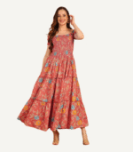 Step into effortless style with this Cotton Smocking Style Long Tiered Dress – the perfect blend of comfort, charm, and boho elegance. Crafted from soft, breathable 100% cotton fabric, this dress features a smoked bodice that offers a flattering fit and playful tiered layers that add volume and movement.