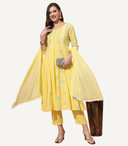 Floral Cotton Kurta Set with Dupatta