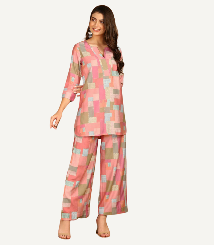 Redefine everyday fashion with our stunning Muslin Foil Print Co-Ord Set, designed for the woman who loves contemporary elegance with a touch of tradition. Made from lightweight and breathable pure muslin fabric, this co-ord features an abstract foil print that adds subtle shine and flair.